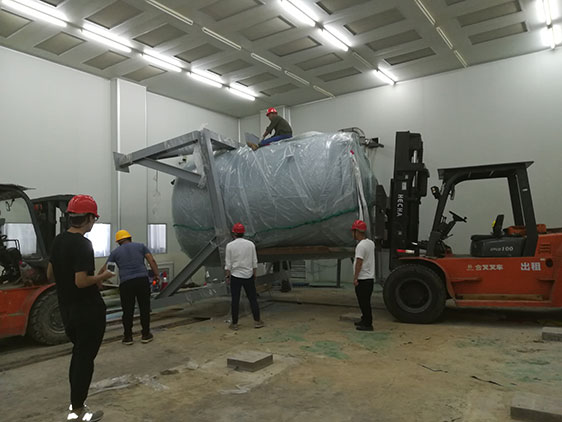 興發集團灌裝車間要安裝二臺設備,因空間限制折臂吊也不能進車間作業,安裝設備的負責人聯系到宜昌叉車出租明輝叉車租賃,我們開了5噸、10噸二臺叉車一早進了車間,看了現場還真是高難度的。設備是二個直徑3米、長5米、重量有5噸多的大灌子和二個支座,要把設備從倉庫搬運到30米外的車間,而且只能用一臺10噸叉車叉進去,先放好支座,然后用叉車把倒著的灌子放到支座里面,再把灌子慢慢的立起來,對面用5噸的叉車托住防止意外,整個過程要一氣呵成穩穩的立起,公司的人在我們進廠時就囑咐灌子價值高,而且灌子里面是易碎的材料做的不能在立的時候太快造成損壞。安裝過程充滿了挑戰性,5個多小時過去了,終于搞定了一個,在我們和安裝人員的群策群力下晚上9點h設備搬運圓滿完成。? ? ? ?